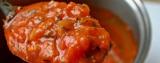 Na koncu jo obvezno začinite z veliko sveže bazilike in kančkom dobrega olja. Zelišča, dodana na začetku kuhanja, izgubijo ves svoj čar, njihov okus naj bo vrhnja, končna nota.Avtor ima raje to hitro različico, še posebej avgusta, ko je na tržnicah mesnata “smetana”. Rezultat je neverjetno bogat in živahen okus, ki ga ni mogoče kupiti v kozarcu.
